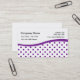Os cartões de visitas roxos na moda e à moda das bolinhas com um teste padrão de bolinhas bonito enviam modelos que do texto você pode personalizar em linha para serir suas necessidades do negócio. Projete para todo o negócio que procura um modelo do design moderno.