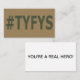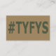 Os cartões de visitas do #TYFYS têm a cor militar subdued "#TYFYS" na parte dianteira e na parte traseira, o texto lê-o "é UM HERÓI REAL!".