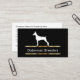 Cartões de visitas doberman Pinscher de criador de cães com silhueta Doberman gráfica e elementos design dourados impressos digitalmente na frente para adicionar um toque de classe num design duplo que inclui impressão lateral dupla. Organize suas informações de detalhes de negócios da forma que você quiser em ambos os lados.