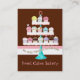 Uma exposição a três níveis de cupcakes mouthwatering é caracterizada neste design. Este design de cartão de visita tem trabalhos de arte pintados mão de Audrey Jeanne Roberts. As cores são um chocolate de leite, um rosa, um azul do aqua, uma lavanda e um creme ricos. No verso é o fundo coordenar e sua informações de contacto. Este design é perfeito para coordenadores wedding, planejadores de evento, lojas do cupcake da especialidade, padarias, lojas do assar, desenhistas feitos sob encomenda do bolo de casamento, e mais. VOCÊ PÔDE IGUALMENTE APRECIAR: CARTÕES DE VISITAS: