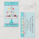 Uma exposição a três níveis de cupcakes mouthwatering é caracterizada neste design. Este design de cartão de visita tem trabalhos de arte pintados mão de Audrey Jeanne Roberts. As cores são um azul, um chocolate, um rosa, uma lavanda e um creme vibrantes do aqua. No verso é o fundo coordenar e sua informações de contacto. Este design é perfeito para coordenadores wedding, planejadores de evento, lojas do cupcake da especialidade, padarias, lojas do assar, desenhistas feitos sob encomenda do bolo de casamento, e mais. VOCÊ PÔDE IGUALMENTE APRECIAR: CARTÕES DE VISITAS: