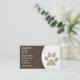 Os cartões de visitas dos cuidados dos animais de estimação com cor à moda e pata imprimem o símbolo com texto e disposição que do texto você pode personalizar em linha. Projetado para um veterinário, um hospital do animal de estimação, um baby-sitter do animal de estimação, ou um serviço de assento do animal de estimação.