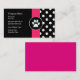 O cartão de visita dos cuidados dos animais de estimação em um divertimento e o design à moda criado com uma pata do cão imprimem e teste padrão de bolinhas na moda preto e branco, junto com uma disposição que do texto você pode personalizar em linha. Projetado para todo o tema do cartão de visita relacionou o assento do animal de estimação, a preparação do animal de estimação, ou o boutique do animal de estimação.