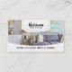 Grandes acentos brancos feathuring da beira do design bonito, profissional e uma imagem da sala de visitas belamente encenada com sofá e arte e mesa. Grande cartão para bens imobiliários, o negócio de plataforma home, a mobília, o corretor de imóveis, a gestão da propriedade, o hotel, o airbnb, os arrendamentos, os apartamentos, as casas, os arrendamentos das férias, o designer de interiores, as renovações, a construção e o mais.