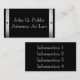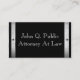 Personalize facilmente este cartão de visita esperto do olhar profissional do ouro. O texto mostrado diz: De "advogado John Q. Público na lei" que você pode facilmente mudar com seu texto feito sob encomenda. Um quadro metálico com parafusos para a profundidade adicionada no olhar de aço do ouro metálico na parte dianteira do cartão com um fundo preto dinâmico dá um cartão de visita devista do olhar 3d corajoso, original. Personalize facilmente com sua própria informação. Use a pia batismal à moda de harmonização do ouro mostrada ou mude facilmente o estilo de pia batismal e colora-o. Um cartão de vista original, especialmente excelente para comércios industriais, especializados em ocupações da construção e da construção, assim como em ocupações de varejo, e outras profissionais. Mais informação pode ser psta sobre a parte traseira também no fundo preto. Um cartão de visita forte que esteja para fora do resto. Mude facilmente o fundo preto a toda a outra cor.