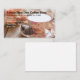 Modelo de cartão de negócios simples da cafetaria com fundo gráfico que indica uma imagem de um copo de café bonito, e rosas no fundo com disposição que simples você pode personalizar em linha. Criado para um café do almoço do café e do restaurante ou do passeio do pequeno almoço.