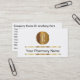 Cartões de visitas que de gama alta da farmácia você pode personalizar com design bilateral simples e poderoso que inclui um almofariz e um pilão simulados do ouro junto com a linha impressa acentos do ouro, e grande disposição do texto. Projetado para uma farmácia, um farmacêutico, ou um negócio da indústria médica.