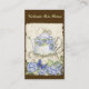 Um grupo de chá azul vintage-inspirado antiqued elegante do hydrange é os trabalhos de arte impressionantes que fazem a estes cartões de visitas do chá ou da cafetaria estar distante. Este design de cartão de visita tem pintados mão, trabalhos de arte da aguarela de Audrey Jeanne Roberts. As cores são um azul, um chocolate, e um creme vibrantes da pervinca. Na parte dianteira um pote azul do chá do hydrangea do estilo antigo com uma beira do hydrangea e uma borboleta azul é mergulhado sobre o crackle de creme um fundo textured com tipo antigo gravura a água-forte do laço. No verso é o fundo coordenar, um copo de chá e uma colher de prata com sala para sua informações de contacto. Este design é perfeito para negócios do chá e do café, lojas de lembranças do victorian, coordenadores wedding, planejadores de evento, lojas da porcelana da especialidade, padarias & lojas do assar que caracterizam o chá e o mais. VOCÊ PÔDE IGUALMENTE APRECIAR: