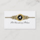 Cartões de visitas elegantes da preparação do animal de estimação com acentos metálicos simulados do ouro, um símbolo da silhueta do cão de caniche, e texto bonito no roteiro extravagante na parte dianteira, com toda sua informações de contacto pertinente na parte traseira você pode personalizar ao seu gosto. Projetado para um groomer do animal de estimação, um salão de beleza do animal de estimação, ou um serviço dos cuidados dos animais de estimação.