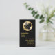 Cartões de visitas do cabeleireiro com emblema do ouro, um símbolo do cabeleireiro, e fundo preto, junto com uma grande disposição do texto você pode personalizar. Elegante e elegante, este cartão de visita da beleza é apropriado para um cabelo, beleza, ou salão de beleza do prego, termas do dia, ou beautician.