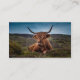 Cartões de visitas escoceses do rancheiro do fazendeiro de gado da vaca das montanhas. O gado escocês das montanhas tem chifres longos e casacos ondulados longos da pele.