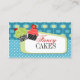 design 2012 da socialite do ©. Nossos cartões de visitas legal e originais da padaria do retro-estilo são certos ser uma batida com seus clientes. O cartão de visita incorpora dois cupcakes e elementos retros e padrões do design. Todos os elementos do design podem ser movidos, resized ou suprimido para serir seu estilo para seu negócio. As cores são azuis, verdes, cor-de-rosa, vermelho e cinzas.