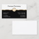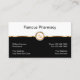 Cartões de visitas médicos clássicos de farmácia para um Farmacêutico desenhado em preto e branco dourado com emblema farmacêutico com aparência de ponta e layout organizado para uma farmácia padrão ou composta.