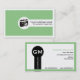 Cartões de visitas femininas fotógrafas verdes, com uma câmera na frente e suas iniciais/monograma no verso.