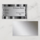 Adicione facilmente seu próprio texto nos modelos para personalizar seus próprios cartões de visitas profissionais. O fundo é uma planície, mas design de prata forte do olhar do metal na parte dianteira e na parte traseira. São adicionadas à parte dianteira do cartão as beiras de aço inoxidável legal do olhar do metal com um olhar 3d de mais beiras do olhar do metal e de um teste padrão da placa do diamante. Grande construção, cartão de visita industrial com um preço disponível.