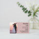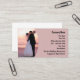 Cartões de visitas fotógrafos com imagem de um casal de casamento beijando no pôr do sol da praia e área de texto pronta para você se personalizar. Podem ser usados por fotógrafos de casamento, catadores, planejadores de casamento ou fotógrafos de praia.