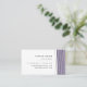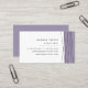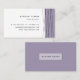 Cartões de visitas modernos e elegantes apresentam uma borda direita de linhas geométricas cruzadas em preto nítido com uma camada inferior de bloco colorido de roxo lilático de cinzas. Adicione seu nome e título/profissão/empresa e três linhas de informações de contato. Cartões inverter para lavanda sólida com seu nome ou nome de empresa destacado no centro.