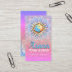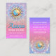 Cores cor-de-rosa e azul-ombre, criando um design geométrico brilhante, avançado por energia, com mandala azul-caleidoscópio elétrico. Um símbolo de equilíbrio de Yin Yang dourado, no centro, frente e trás ~ você poderia também substituir uma das imagens pelo seu logotipo, se necessário (ou apagar) - espaço de sobra para adicionar seus detalhes - negócios de excelente e ocupação dentro da saúde e beleza, spa, terapêutica, clarividente, ioga, Reiki, massagem, e tudo dentro da nova era e holística e também para artes, moda +. Totalmente personalizável. Feito com o vigor em Webgrrl.biz