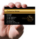 Cartões de visitas imobiliários com símbolo de casa em uma lupa e design moderno que você pode usar com emblema de nome de empresa dourado. Melhores cartões de visitas para temas relacionados a imóveis, corretores, corretores, construtores ou técnicos.