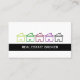 Cartões de visitas imobiliários com filas coloridas de casas, e design inteligente de dois lados. Personalize a cor e a fonte do texto para torná-la sua. Projetado como um design mínimo, mas eficaz, na frente com informações de contato na parte traseira. Perfeito para corretor imobiliário, corretor imobiliário, agente de vendas ou agência.
