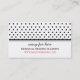 Bolinhas, cor-de-rosa e preto se juntam para criar um rico e um cartão de visita feminino de Kustom by Kris. Mostrado aqui com uma noiva e um casal de pássaros opcionais, você pode substituir a imagem por seu próprio logotipo ou monograma. Personalize a frente com seu nome de negócios, slogan e site. Adicione seu nome e detalhes de contato ao verso. Entre em contato comigo se tiver problemas para trocar o gráfico de pássaros pelo seu próprio logotipo, ou se você quiser que eu crie este design com um gráfico diferente.