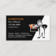 Este cartão de visita retrorreflector legal é projetado com um gráfico de um personagem de mão de obra que segura uma caixa de ferramentas em um design único para qualquer pessoa que faça manutenção domiciliar, reparos domiciliários ou trabalhe como um Handyman profissional.