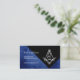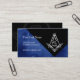 Você está procurando cartões de visitas masônicos criados em modelos que você possa personalizar? Aqui estão cartões de visitas modernos, únicos e masônicos que certamente se destacam do resto. O design da frente ilustra o quadrado prateado e compõe o símbolo de alvenaria sobre um fundo azul de cor d'água preto e profundo. A parte de trás tem uma área para texto mais personalizado e tem a frase, "Ser uma Pergunta Um." Opcionalmente, você pode remover os gráficos deste lado para deixar o vazio para escrevendo. Categoria: modelos de cartão de negócios e papéis de carta de ideias. Cores: azul, marinho azul, preto, prateado e branco.