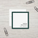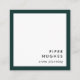 Cartões de visitas quadrados simples e profissionais apresentam seu nome e título ou ocupação no canto inferior direito, enquadrados por uma rica fronteira verde caçadora. Adicione as informações de contato ao lado inverso. Inclui três ícones de mídia social e um campo para seu nome de usuário.