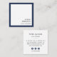 Cartões de visitas quadrados simples e profissionais apresentam seu nome e título ou ocupação no canto inferior direito, enquadrado por uma borda azul marinho. Adicione as informações de contato ao lado inverso. Inclui ícones de mídia social azul marinho e um campo para seu nome de usuário.