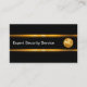 Cartões de visitas clássicos para um serviço de segurança criado com uma estrela de tom de ouro impressa digitalmente e um gráfico de banner de nome de empresa, juntamente com dois layout lateral organizado e pronto para personalização on-line. Funciona para segurança de dados, cibersegurança, corporativa ou privada.