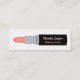 Um cartão de visita moderno e contemporâneo que tenha um design de um batom com espaço na vara para a personalização dos detalhes. A cor do batom está em uma máscara alaranjada peachy clara. Este design de cartão de visita magro e lustroso é grande para maquilhadores, estilistas e aqueles nos negócios da beleza. Personalize facilmente com seus detalhes do negócio.