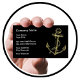 Cartões de visitas náuticos de barco com emblema de âncora dourado e barco preto e layout de texto de excelente que você pode personalizar. Excelente para barco, navegação, clubes de pesca, cartas de pesca de profundidade ou marina.