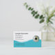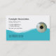 Cartões de visitas optometristas modernos com imagem de um olho, elemento design azul atraente e texto que você pode personalizar para se adequar à sua prática médica. Projetado para oftalmologista, oftalmologista ou loja de vestidos oculares.