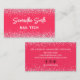 Cartão de visita para tecnologia de unhas com faux glitter e um fundo rosa quente. Cartões de clientes empresariais do Salon Proprietário ou do unhas doméstico em estilo.