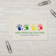 Cartões de visitas para uma babá ou centro de creche com ilustração de impressões digitais vermelhas, amarelas, azuis e verdes na frente e atrás. Personalize com suas informações.