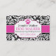 cartões de visitas Para Cachorros | Cachorro. Torne fácil para seus clientes contatá-lo com esses lindos e profissionais cartões de visitas de marcenaria de animais de estimação/andadores de cães. Fundo preto e branco úmido com fita rosa-quente e logotipo de pata-rosa-quente para complementar os cartões de visitas andarilhos de cães apanhadores de olhos. A parte de trás é tão na moda quanto a frente com todas as informações que seus clientes precisam para entrar em contato com você. Esses cartões de visitas andantes de cães vêm em várias cores e podem ser personalizados com suas informações usando os campos de texto simples do modelo de cartão de negócios.