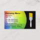 Cartões de visitas de pintura com fundo colorido de roda num arco-íris de cores, juntamente com um pincel de tinta e um layout de texto que é fácil de personalizar. Melhores cartões de visitas para temas relacionados a pintura caseira, empreiteiro de tintas, pintor comercial ou revestimentos de tinta e suprimentos.