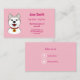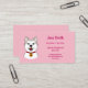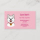 Cartões de visitas simples, modernos, de rosa claro para caminhantes de cães e babás; com imagens de desenho animado de um cão e ícones personalizáveis das mídias sociais, quando você pode adicionar seu Facebook e Twitter. nome de usuário. O design é personalizado com campos de texto personalizáveis para seu nome, negócios e informações de mídia social.