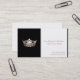 Mostrado em um cartão de visita de tamanho padrão, mas no estoque da placa pérola com um martelo luminoso. Tem uma coroa Dourada de champanhe glamourosa junto com um espaço para preencher todos os seus detalhes importantes. Estilo clássico. Voltar é a vazio de você personalizar mais com seu endereço, horas e horário de compromisso, se desejar. Personalize ainda mais carregando sua própria cabeça em vez da coroa, se preferir.