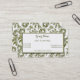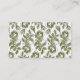 Cartões de visitas personalizados elegantes com script de ouro e quadros de letras de bloqueio dentro um quadro de ouro em um padrão de fundo de rosas de safra em branco e dourados, restaurados a partir de um manuscrito antigo.