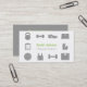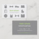 Um cartão de visita moderno, contemporâneo, profissional e à moda com ícones familiares da malhação na paleta de cor cinzenta e branca. Incluem o kettlebell, os pesos do dumbbell, os calçados dos esportes, os shorts, a prancheta no plano da malhação, a garrafa de água e a maçã para simbolizar a hidratação, a dieta e a nutrição, a bola do gym do exercício, a camisola interioa do exercício e a escala de medição. Excelente para instrutores pessoais freelance do gym, instrutores e qualquer um da malhação na indústria da saúde e da malhação. Personalize facilmente com seus detalhes do negócio.