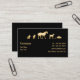 Cartão de visita Pet Care com foto de um na moda simulador de animais dourados, incluindo um cão, gato, cavalo, coelho e tartaruga com pata impressa no verso, juntamente com um layout de texto de excelente que você pode personalizar agora. Cartão elegante para o tratamento de animais de companhia que faz um modelo excelente para um veterinário, uma babá de animais de estimação, um hospital de animais ou um cartão veterinário.