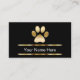 Faça o upgrade de cartões de visitas de assistência para animais de estimação que você pode personalizar com um design simples, mas eficaz, que inclui impressão em ouro de pata para cães, realces de linha impressos em ouro e layout de texto de excelente. Melhores cartões de visitas para temas relacionados ao aliciamento de cães, ao aliciamento de animais de companhia, ao salão de animais de estimação ou ao canil, à creche ou ao babá de animais de estimação.