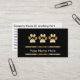 Faça o upgrade de cartões de visitas de assistência para animais de estimação que você pode personalizar com design simples, mas eficaz, que inclui três impressões de pata de cão impressas em ouro, realces de linha impressos em ouro e layout de texto de excelente. Melhores cartões de visitas para temas relacionados com o aliciamento de cães, o aliciamento de animais de companhia, o salão de animais de estimação ou o canil, a creche ou a babá de animais de estimação.