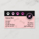 Cartões de visitas Pet Care com impressões de na moda juntamente com um layout de texto de excelente que você pode personalizar agora! Cartão Elegante para animais de companhia que trabalha com temas relacionados com o almôndegas, o almôndegas móveis, a babá ou o aliciamento de cães, a obediência ou o treino, o canil, o hospital ou o cartão veterinário de animais.