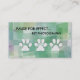 Um modelo de cartão de negócios de fotógrafo exclusivo com patas de cachorro na frente, junto com o nome de sua empresa, e todas as suas fotografias e informações de contato na parte de trás. Concebido para um serviço de fotografia para animais de estimação, para retratos de animais de estimação ou para cães com fundo de abstrato bonito.