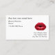 Modelo de cartão de negócios de beleza moderno e robusto, incluindo o padrão de bolinhas vermelho-chic e branco e lábios vermelho-vivo com batom brilhante na frente com todas as informações de contato pertinentes na parte de trás. Projetado para um representante de cosméticos, maquiador ou consultor de beleza.