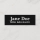 Cartões de visitas pretas básicas para personalizar. Escolha o texto, a fonte e a cor da fonte. Personalize seus cartões de visitas com o mínimo ou o máximo de informações desejado. Oferecemos cada design em 3 tamanhos (magra, chubby e padrão) para que você possa criar exatamente o cartão que expressa você e sua empresa. criamos o fundo, e algumas de nossas muitas cartas têm ilustrações, bordas e detalhes decorativos, mas você cria o texto. É tão fácil, basta usar a ferramenta PERSONALIZAR TI. Você pode escolher a fonte, a cor da fonte, e pode editar o texto completamente. Crie cartões de visitas que atraem os clientes e façam uma declaração memorável!