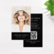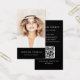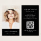 Cartões de visitas de fotos personalizadas, modernas, verticais, pretas com seu nome, título e foto na frente. Campos de modelo personalizáveis para nome, título, informações de contato e código QR no verso. Você pode alterar as cores de fundo e fonte, mover e redimensionar elementos com a ferramenta design. Siga-nos no Facebook: @business stationery para mais produtos, notícias, vendas e muito mais.