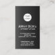 Este design de cartão de visita inteiramente customizável, elegante tem um fundo preto liso com uma pia batismal do Deco-estilo da arte. Muito elegante e masculino. Adicione seu logotipo feito sob encomenda, nome, negócio ou nome da empresa, endereço do remetente, Web site ou a outra informação no modelo. Substitua simplesmente as palavras da amostra com seus próprias.